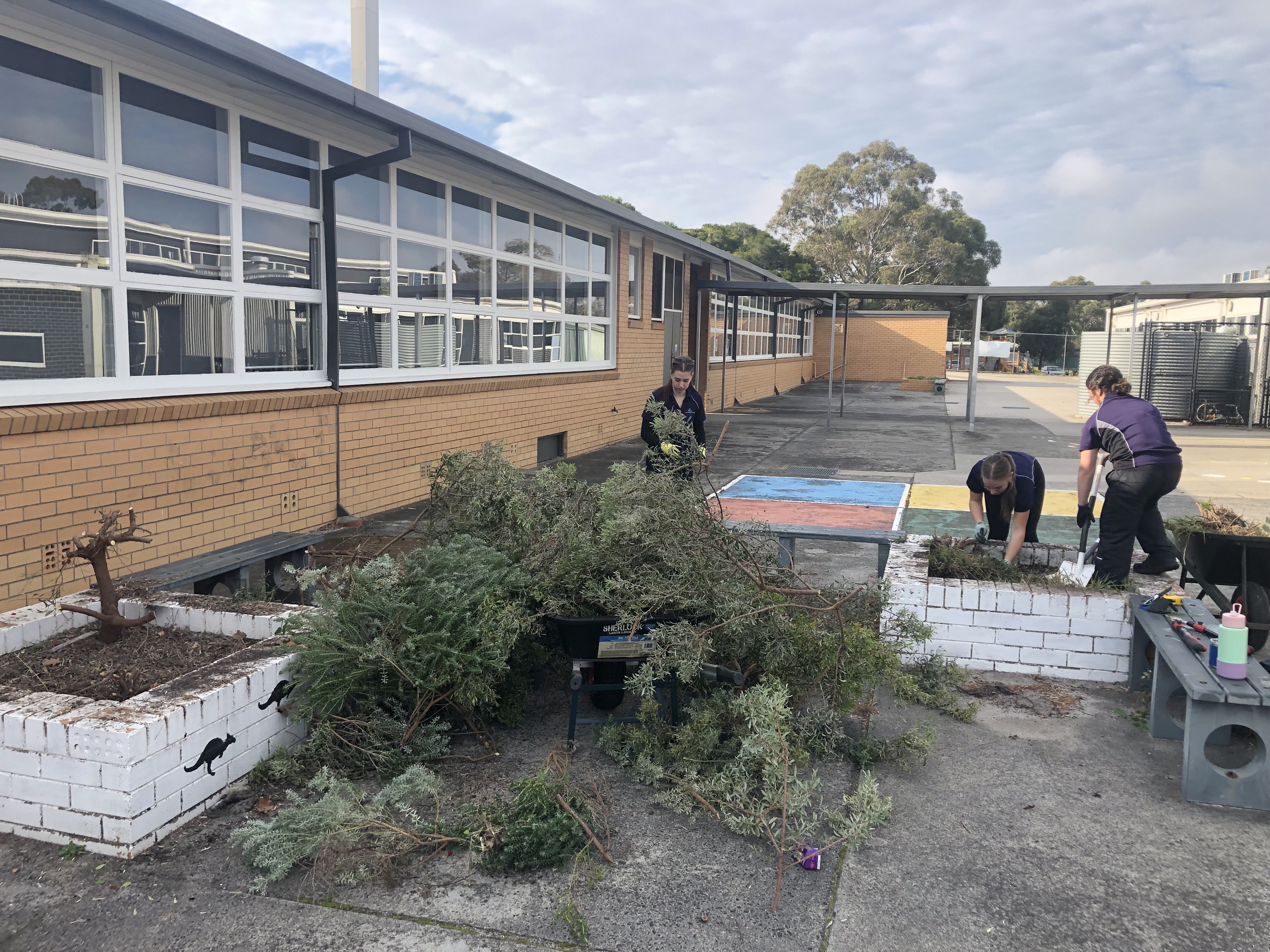 | This week, a group of students from McClelland College started their landscaping project with the school. As part of their landscaping program, they will be researching, designing and planting out the raised, brick garden beds in the grounds. | ![]() |
