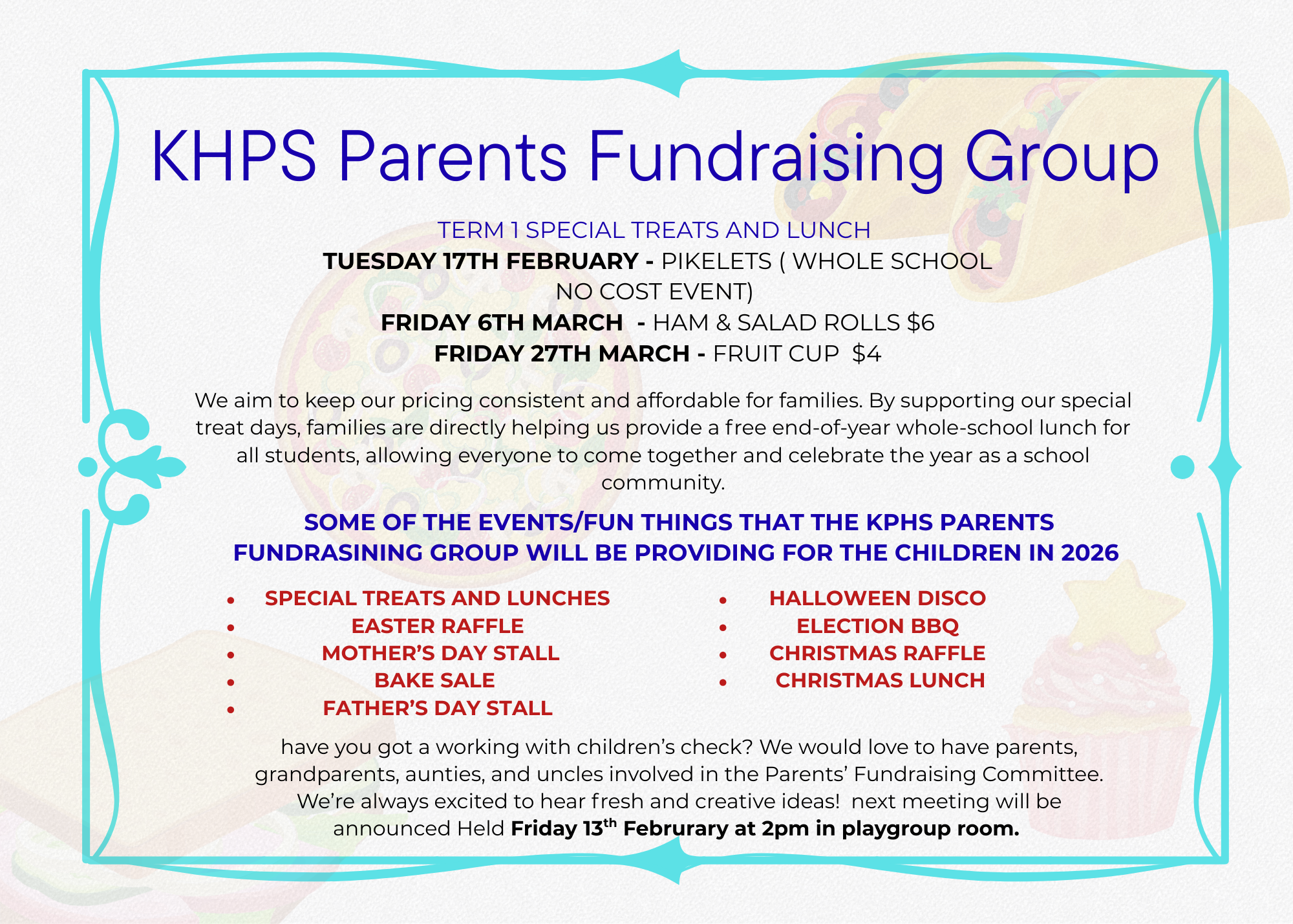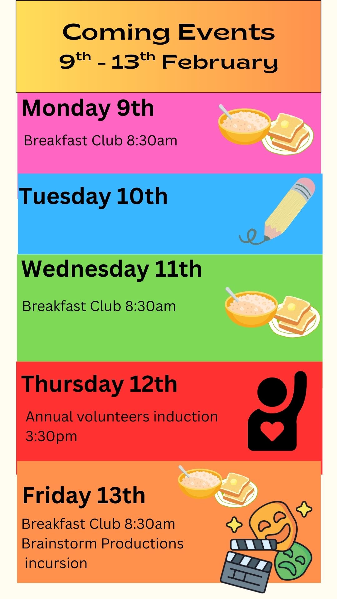 As part of our child safety procedures, all volunteers at the school are required to hold a valid Working With Children Check and complete an induction. If you would like to volunteer this year and have not yet attended an induction, or if you would like a refresher on our child safety processes, please register for one of the upcoming information sessions. Two sessions are being offered | |