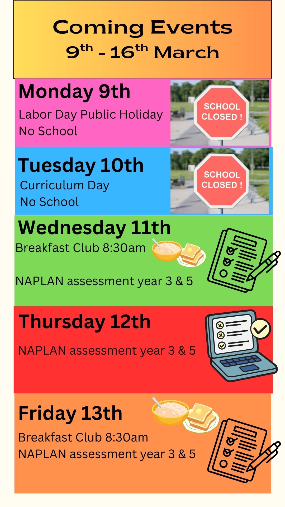 Change of NAPLAN schedule. | |