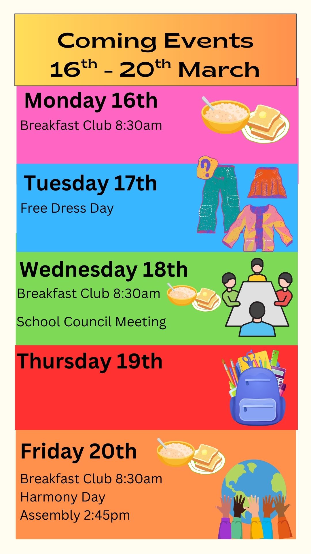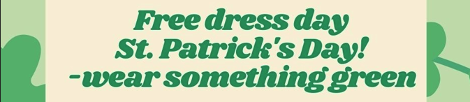 ![]() | Please keep an eye out for the dates on the following notices: * St. Partick's Day free dress notice. |